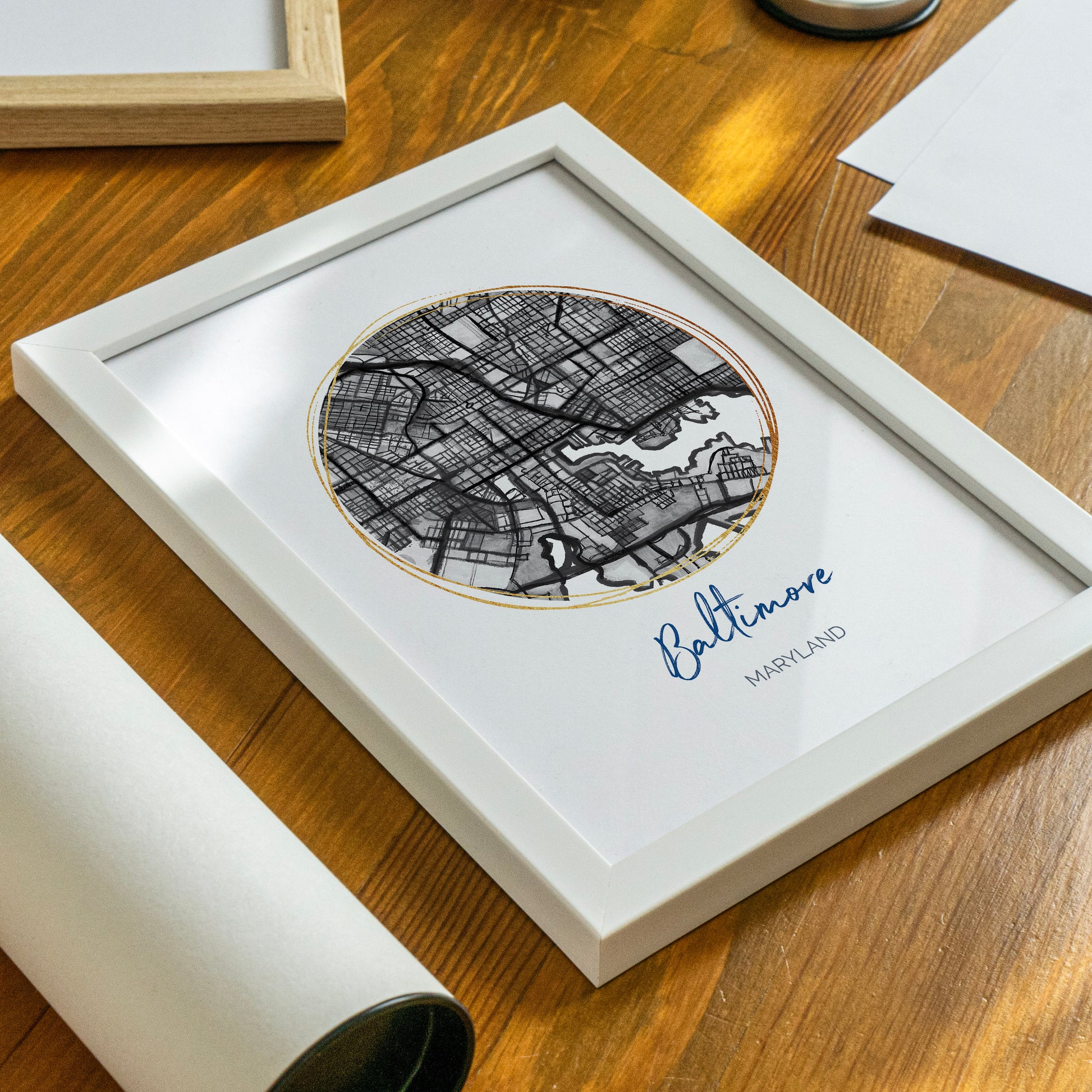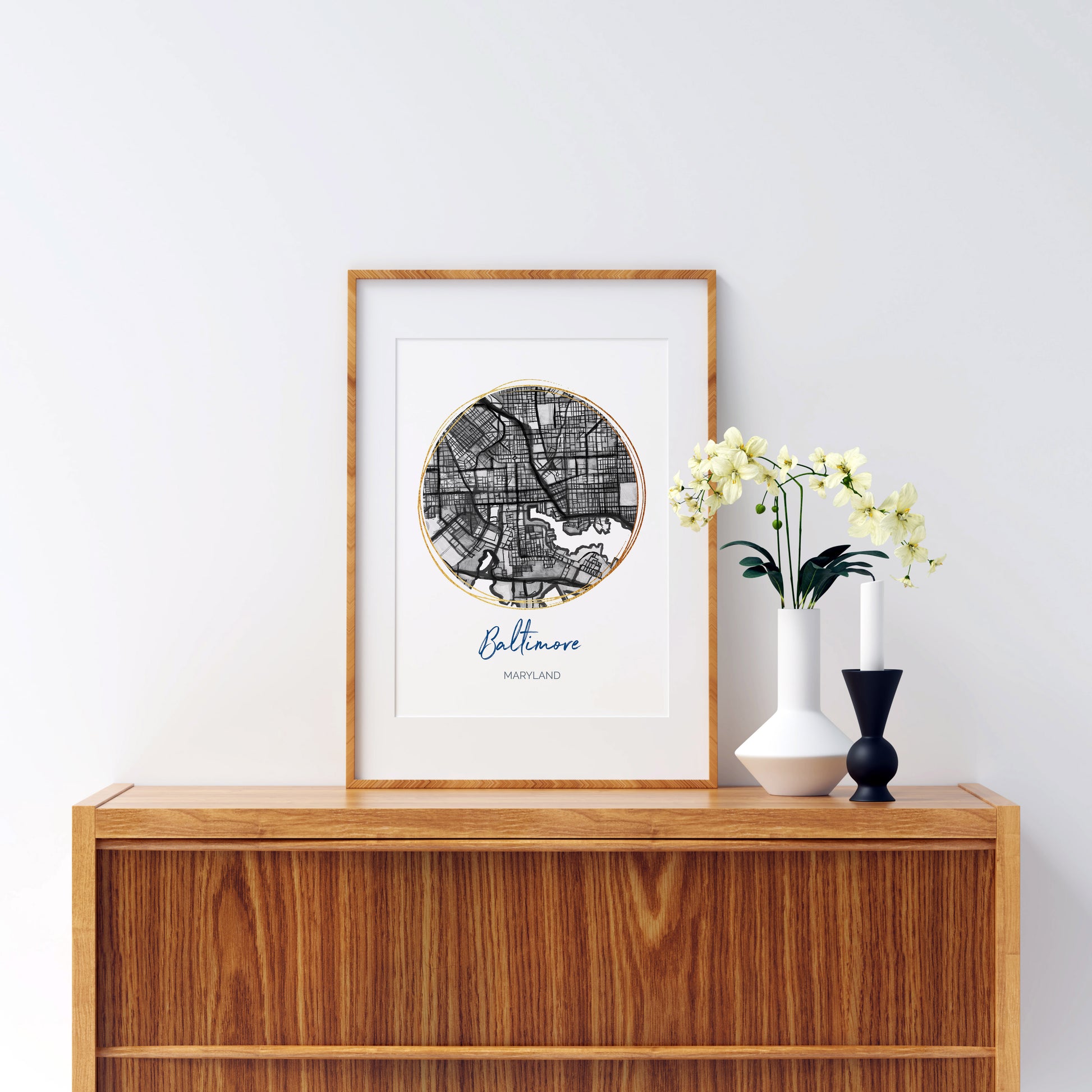 Baltimore MD Map Art - Digital Fine Art Print. Black & White