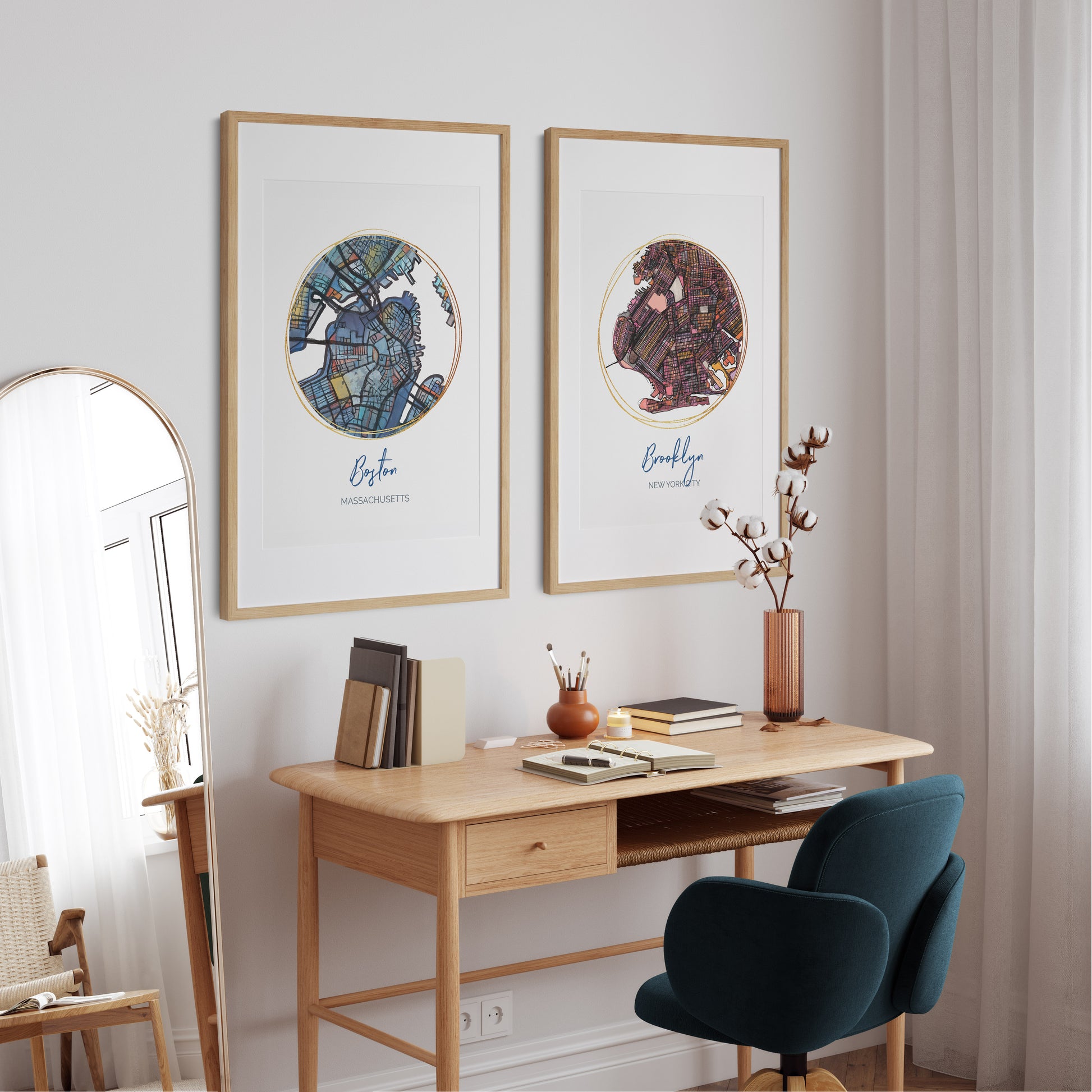 This luxury full-color digital print preserves the depth and nuance of the original drawing - allowing every line, hue, and intersection to feel alive within a space. The result is artwork that brings a sense of curated wanderlust into upscale residences, creative studios, and thoughtfully designed interiors.