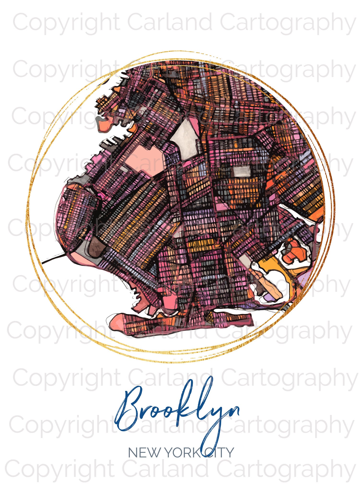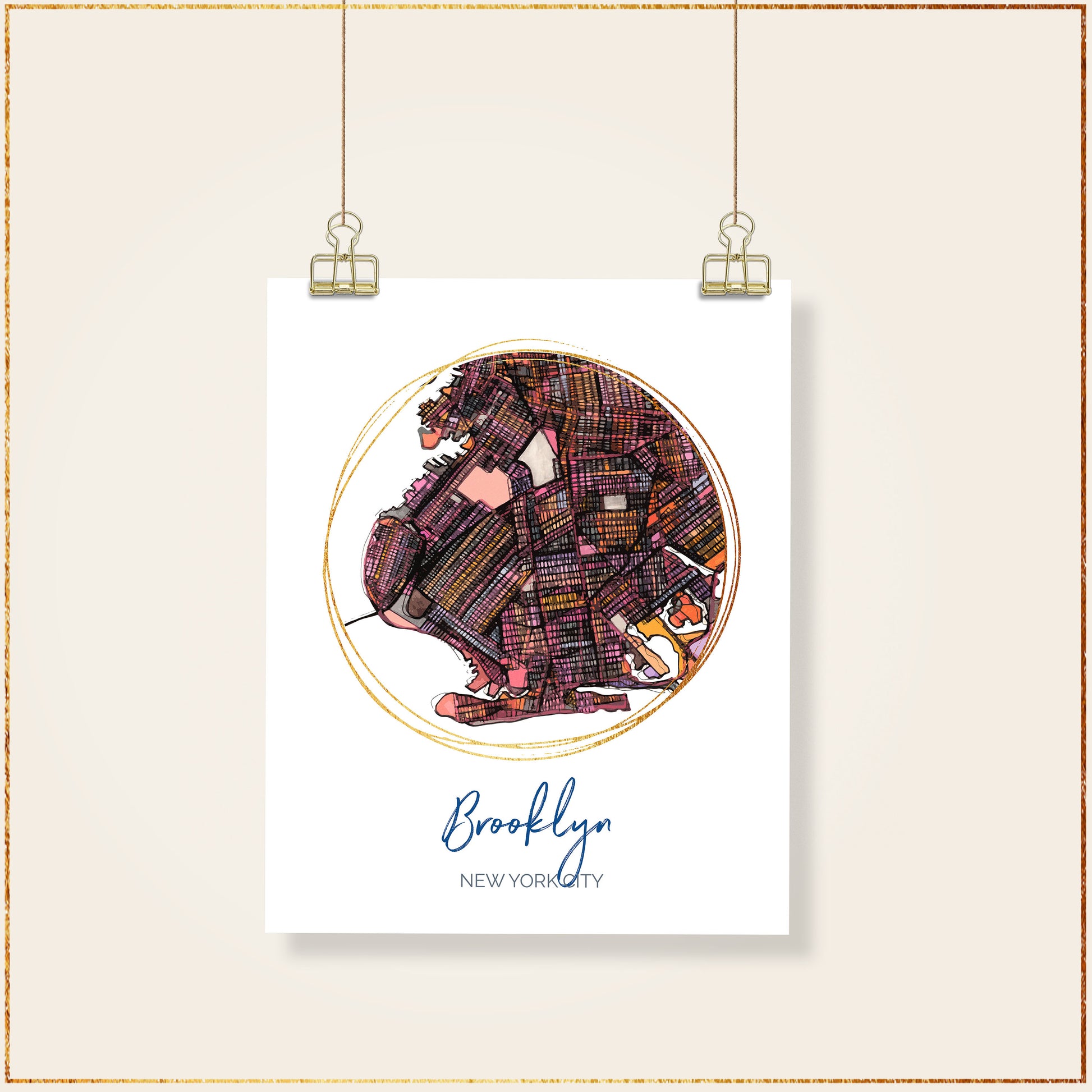 Brooklyn NYC Map Art - Digital Fine Art Print. Full Color.