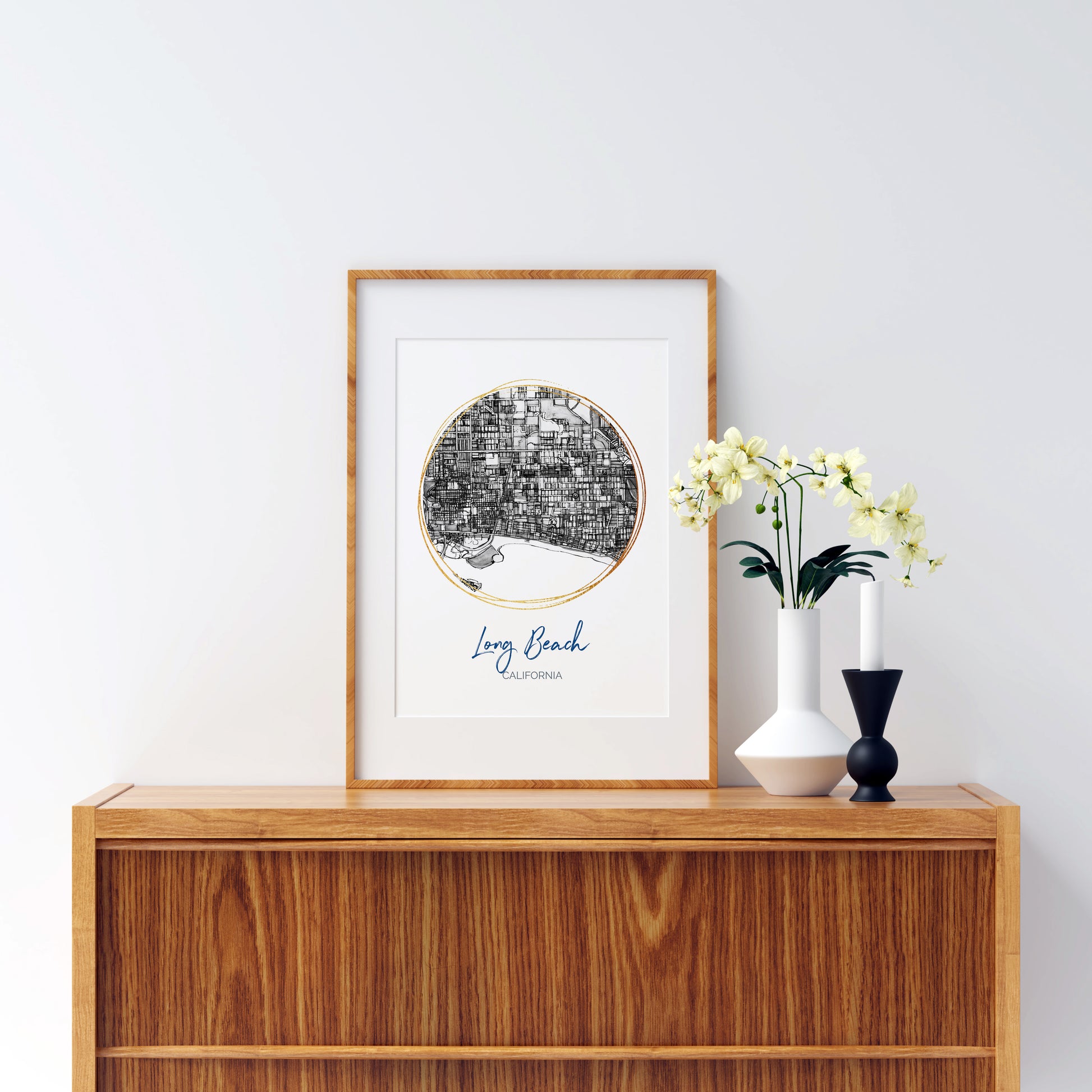 Long Beach CA Map Art - Digital Fine Art Print. Black & White